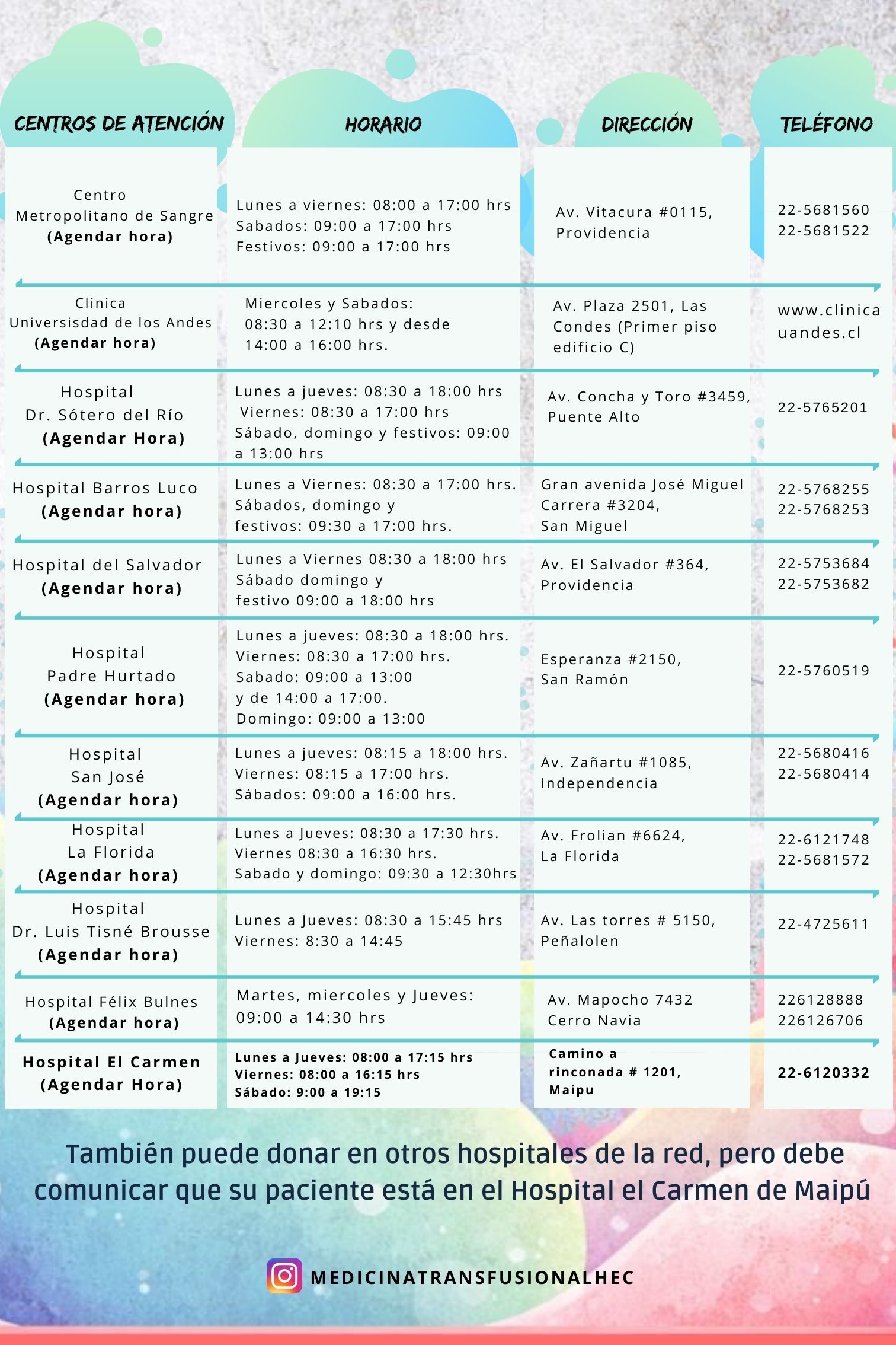 Revise los hospitales que forman parte de la red centralizada AQUÍ